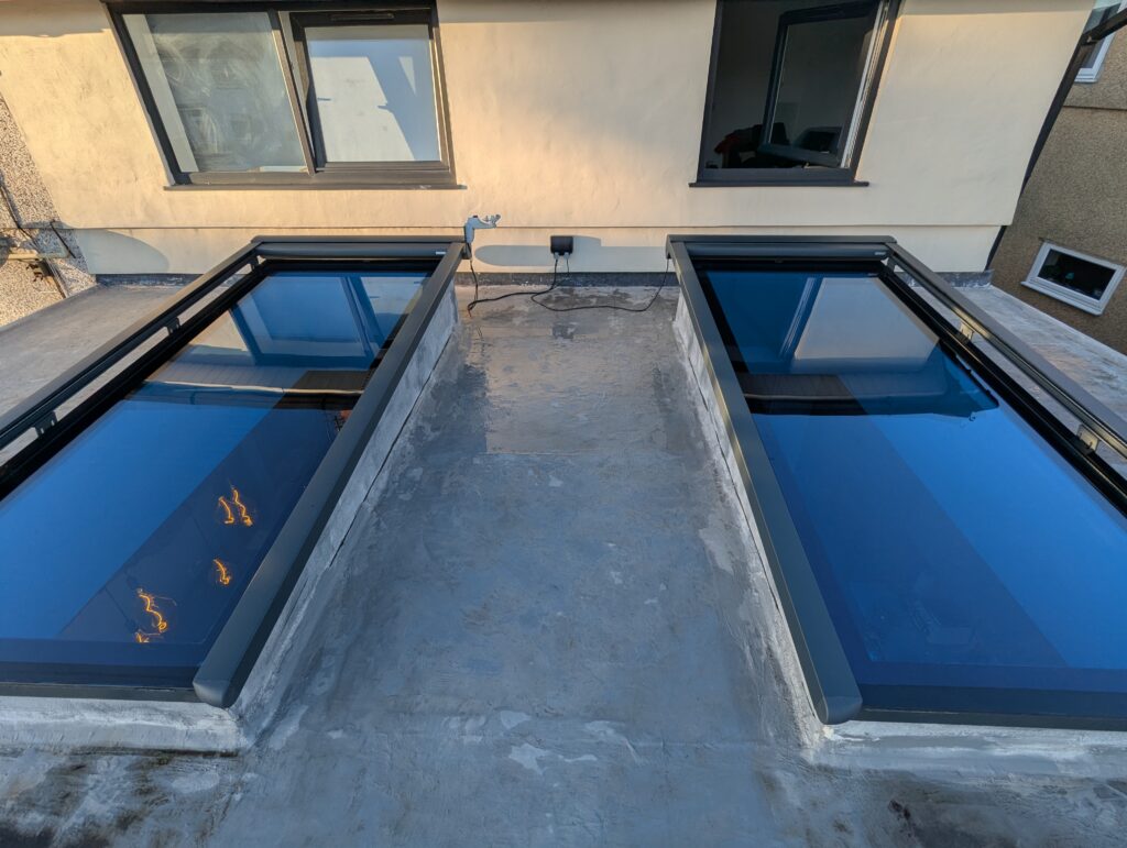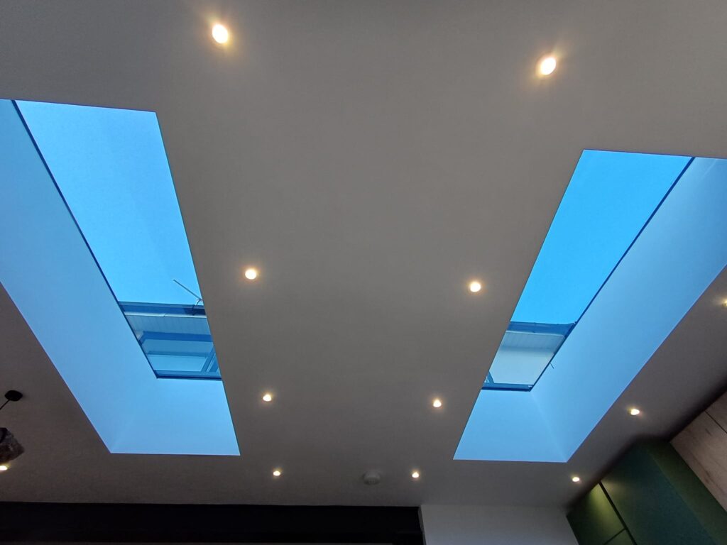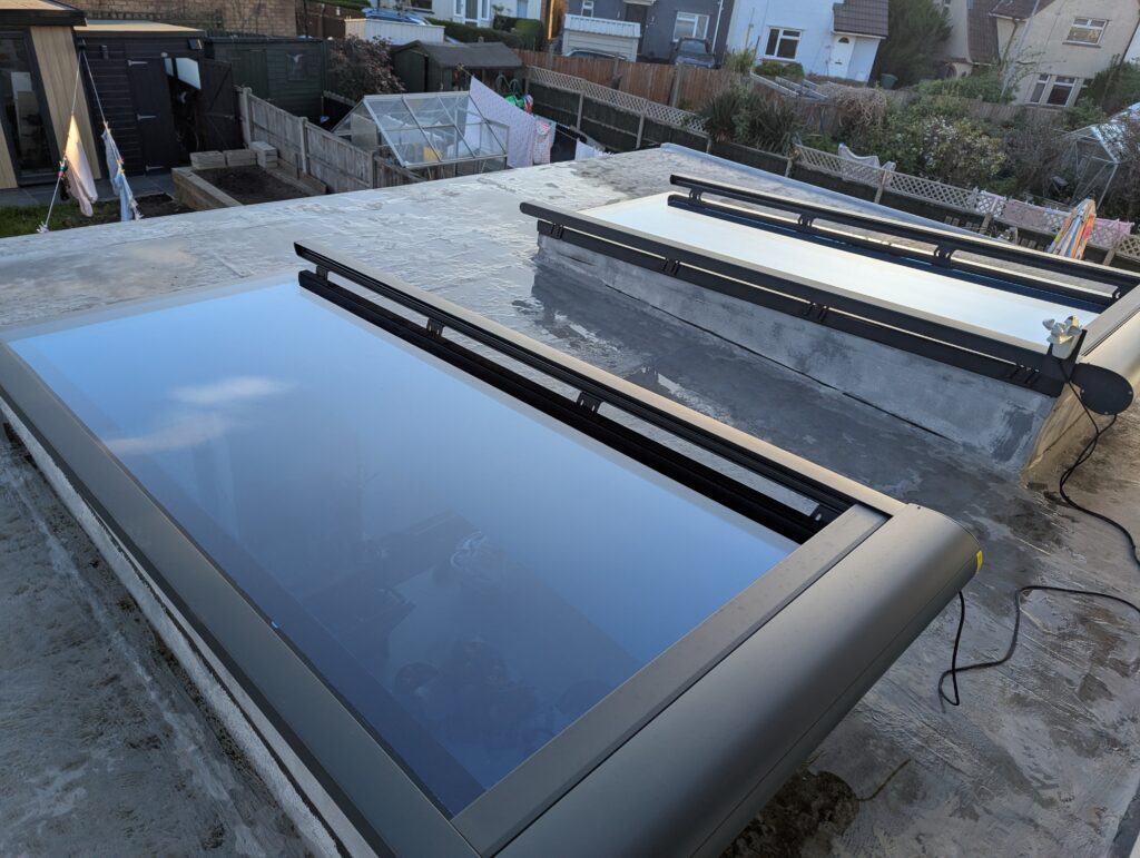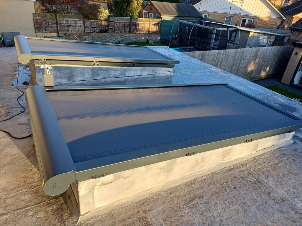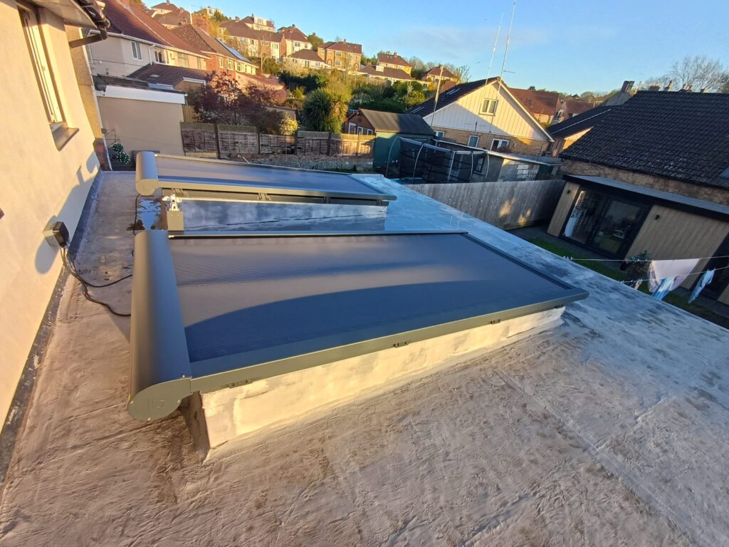 With this understanding, Chris recommended two external Artemis electric roof blinds in Slate Grey blockout fabric. Because the Artemis system sits outside the glazing, it stops the heat before it enters the home. This approach delivers over 90% heat rejection on modern double glazing, which internal blinds cannot match.