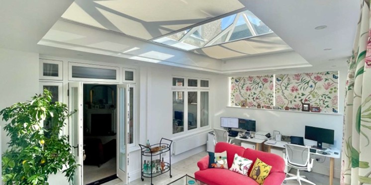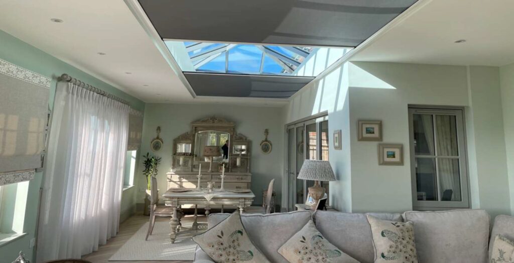 A roof lantern is one of the harshest environments you can put a blind into. The fabric is stretched across a horizontal span, carrying its own weight while taking the full force of the sun. Only advanced materials such as fibreglass screens, pre‑tensioned composites and engineered technical textiles can withstand this stress day after day, year after year.