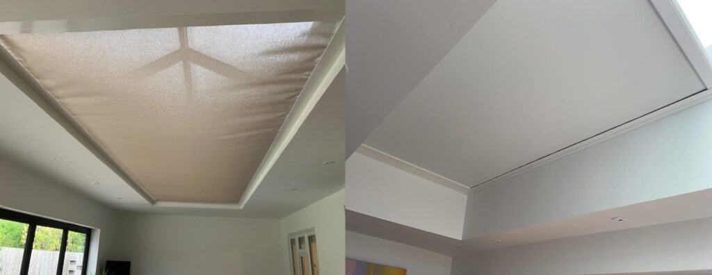 A premium system uses advanced mechanics, like zip-tensioned technology, to help prevent this. The fabric is securely locked into discrete channels along the sides. A roof blind system needs ultimate fabric tension to give the flawless finish that looks like a ‘false ceiling’ when closed as oppose to the saggy duvet cover effect.