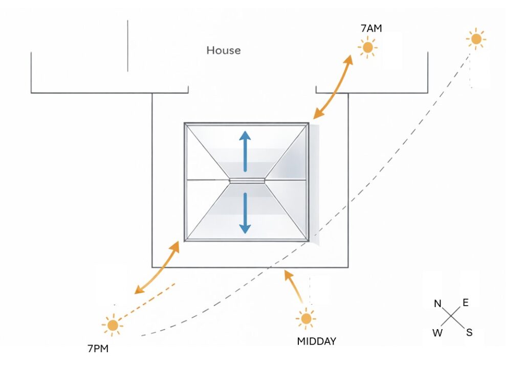 You might want to shade the cooker so you can read the digital controls without darkening the whole room. Or perhaps a certain angle on the TV becomes unwatchable at specific times. Understanding the sun’s path helps you decide the configuration of your electric roof lantern blind.